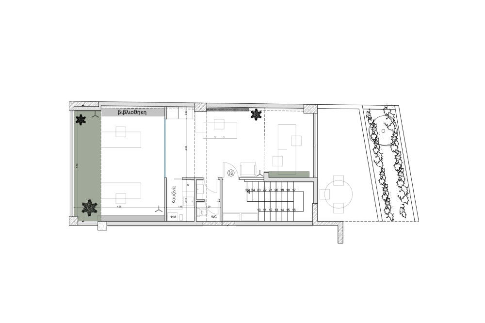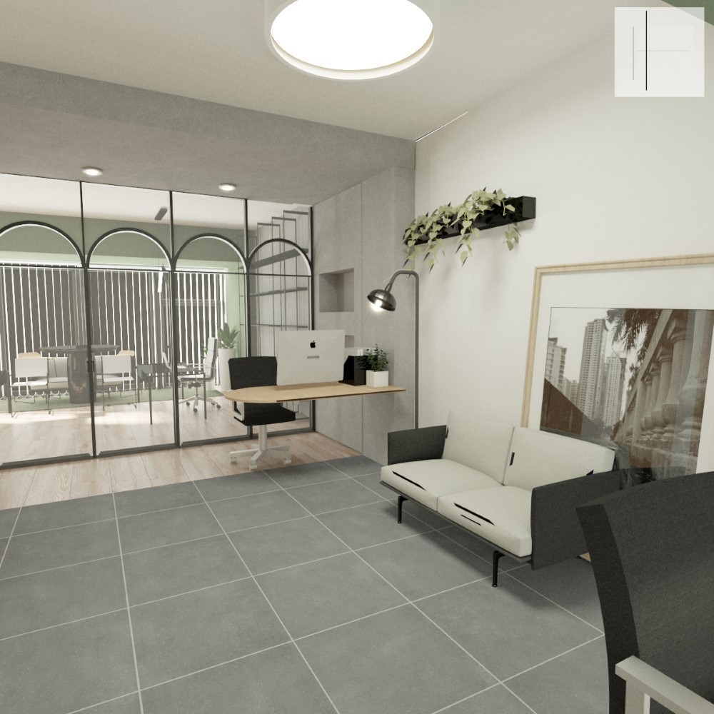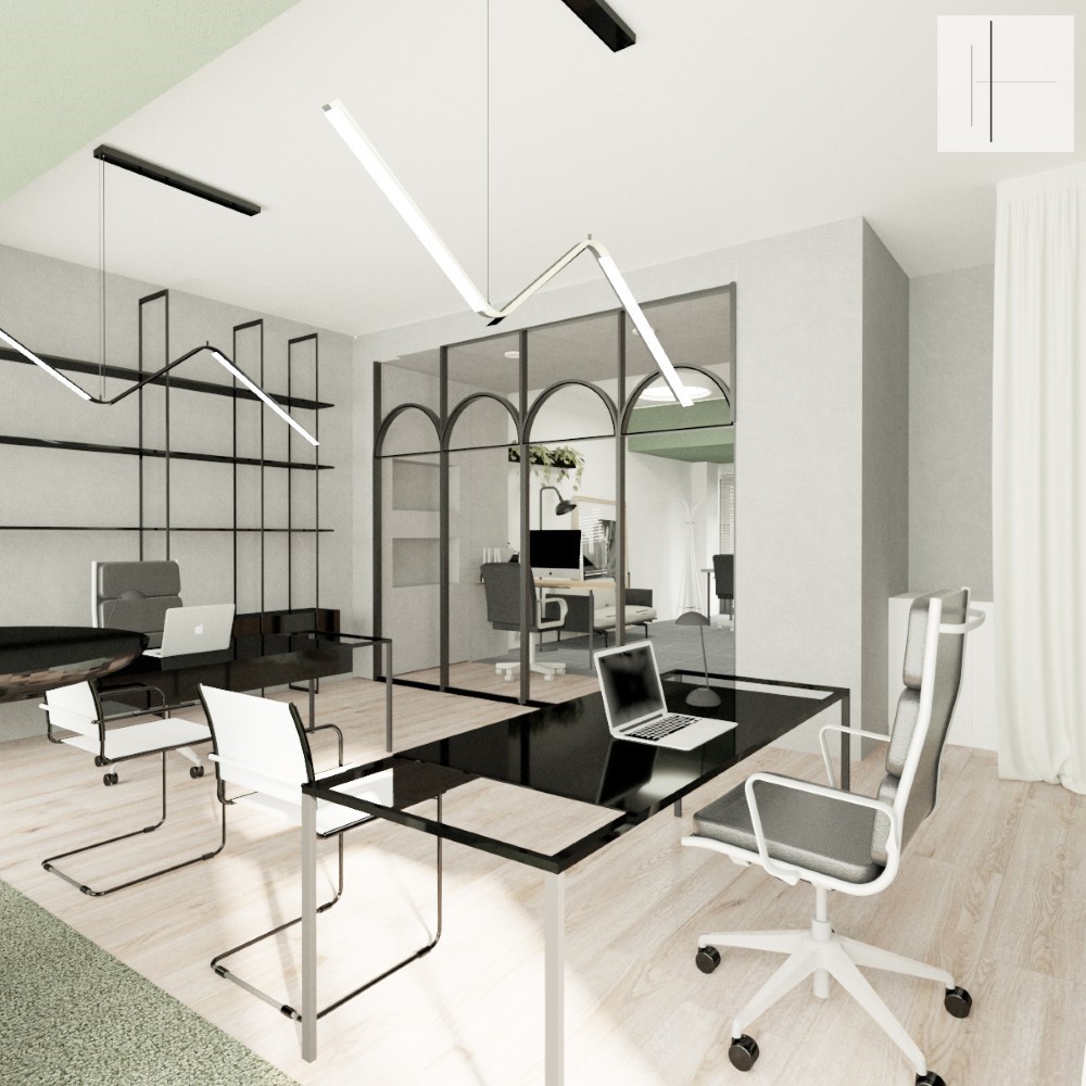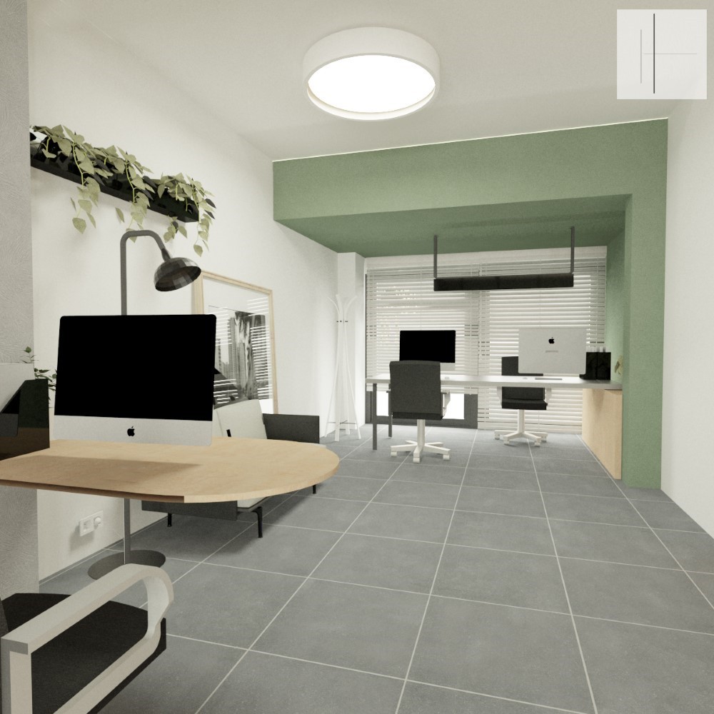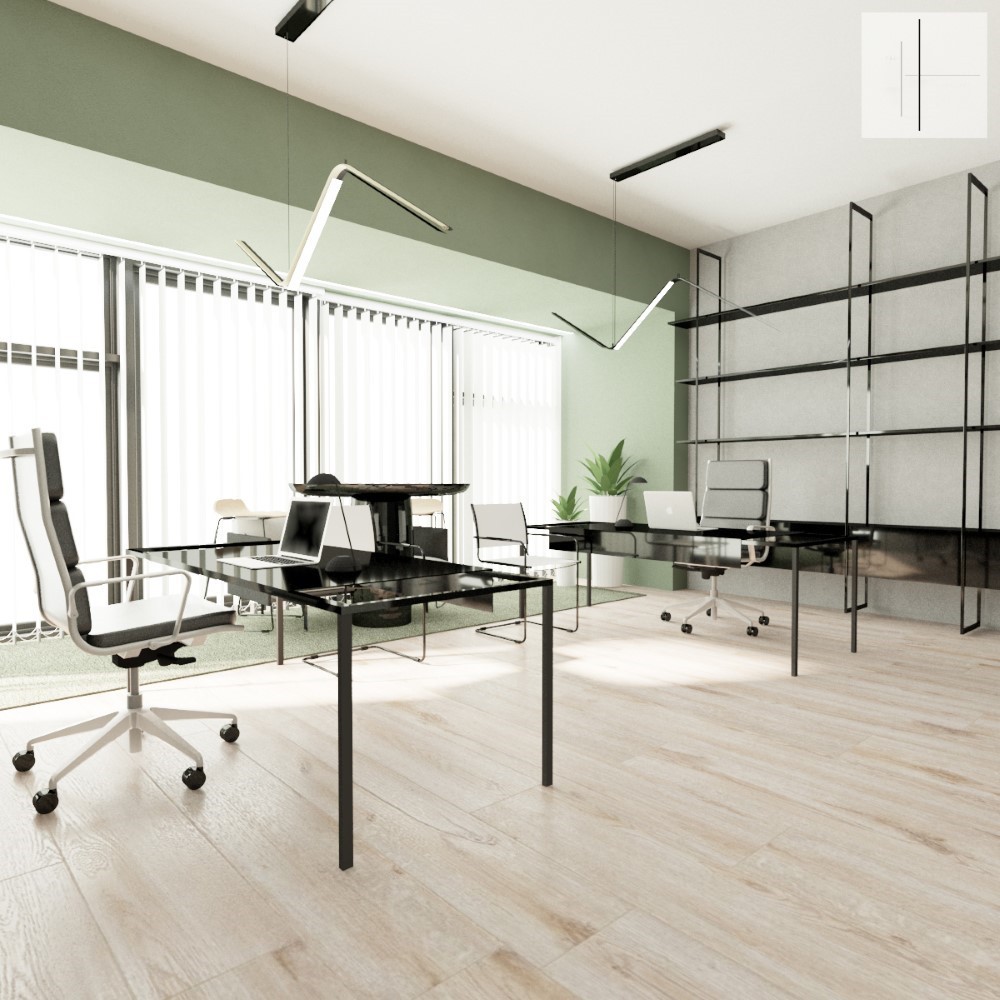 Πρόκειται για αρχιτεκτονική πρόταση και διακόσμηση γραφείων στα Πεύκα, Θεσσαλονίκης. Ο χώρος συστεγάζει δύο μηχανικούς με κύριο αντικείμενο απασχόλησης, τα φωτοβολταϊκά πάρκα. Η βιωσιμότητα και η ανακυκλώσιμη ενέργεια, στάθηκαν η αφορμή για την συνολική αντιμετώπιση του χώρου, με το πράσινο της ελιάς να μπαίνει για τα καλά στο παιχνίδι, της κατα άλλα μίνιμαλ αρχιτεκτονικής διάθεσης.