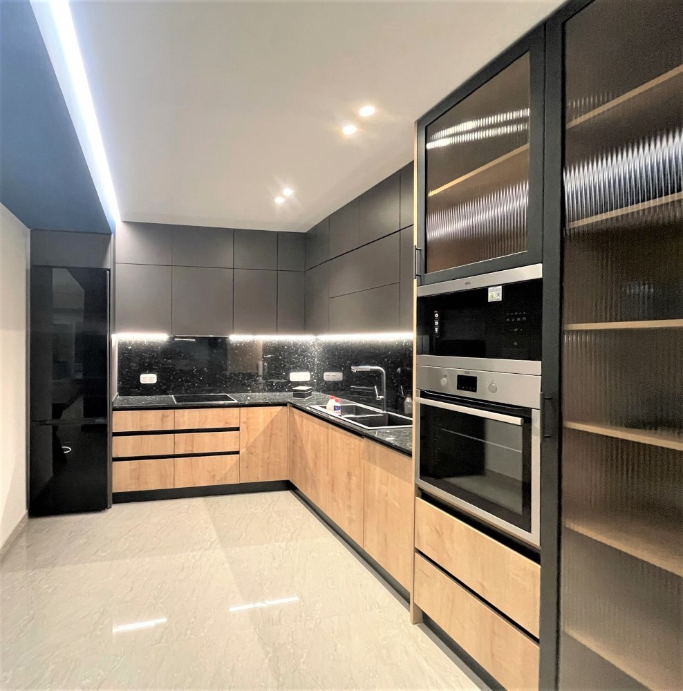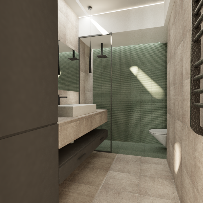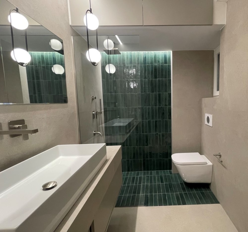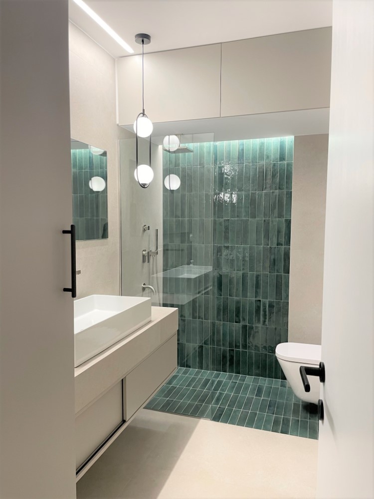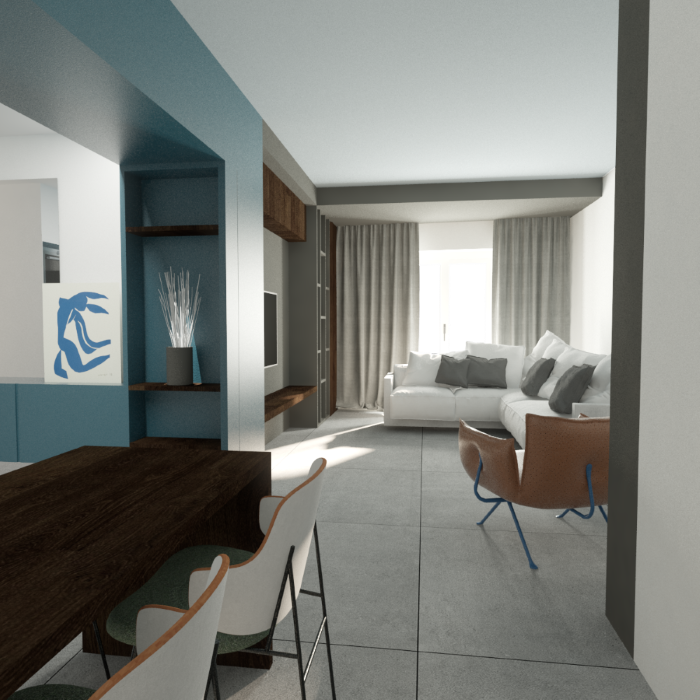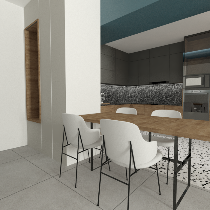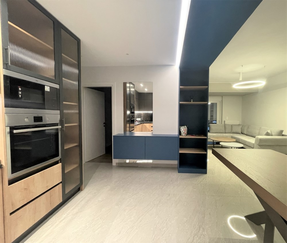 Ριζική ανακαίνιση πραγματοποιήθηκε για ένα διαμέρισμα στα Γρεβενά όπου δημιουργήθηκαν εκ νέου τρία υπνοδωμάτια και ένα ενιαίος χώρος σαλοκουζίνας. Όλα τα έπιπλα είναι ειδικά σχεδιασμένα για τις ανάγκες των ιδιοκτητών και εναρμονίζονται απόλυτα με τον περιβάλλον τους. Οι ψυχροί τόνοι του μπλε και των πράσινων πλακιδίων στο μπάνιο, ήρθαν να εξισορροπήσουν και να δώσουν μια πιο παιχνιδιάρικη διάθεση στο χώρο.